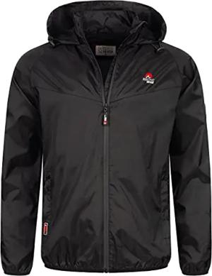 Herren Regenjacke leicht Outdoor Übergangsjacke mit Kapuze [AS-284-Schwarz-Gr.M]