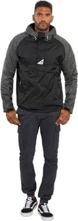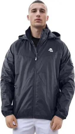 Herren Regenjacke mit Kapuze Windbreaker Schlupfjacke AS324 [AS-324-Schwarz-Dunkelgrau Größe L-Gr. L]