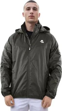 Herren Regenjacke mit Kapuze Windbreaker Schlupfjacke AS324 [AS-324-Olive-Schwarz Größe XL-Gr. XL]