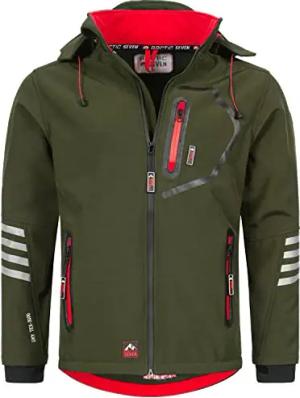 Herren Softshell Jacke Funktionsjacke Outdoor Regenjacke Atmungsaktiv Fleece Innenfutter AS301 [AS-301-Olive-Rot-Gr.S]