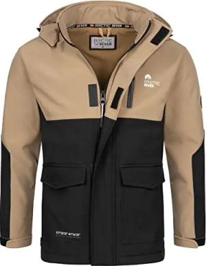 Herren Softshell Outdoor Jacke Wasserabweisende Funktionsjacke Windbreaker AS303 [AS-303-Beige-Schwarz-Größe M-Gr.M]