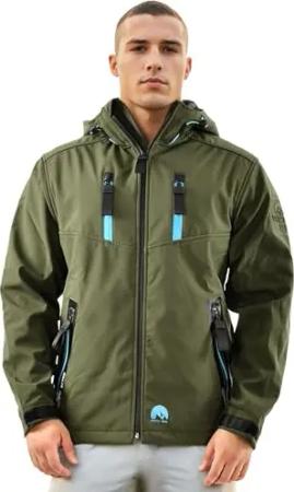 Herren Softshell Jacke Funktionsjacke Outdoor Regenjacke Atmungsaktiv Fleece Innenfutter AS087 [AS-087-Olive-Gr.L]