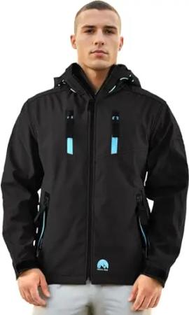 Herren Softshell Jacke Funktionsjacke Outdoor Regenjacke Atmungsaktiv Fleece Innenfutter AS301 [AS-301-Schwarz-Blau-Gr.S]
