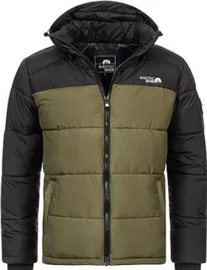 Herren Winter Stepp Jacke gesteppte Winterjacke warm Kapuze AS-333 [AS-333-Dark-Olive-Gr.L]