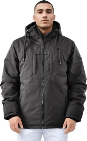 Herren Winterjacke (S-3XL) - Wind- & Wasserabweisend, abnehmbare Kapuze, 4 Taschen, Steppjacke, Warme Jacke Männer - AS-420 (S, Dunkelgrau)