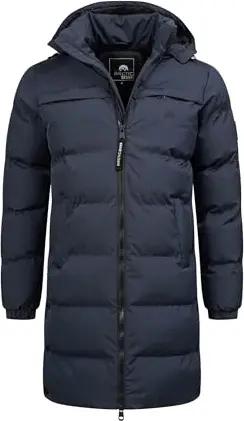 Herren Winterjacke (S-3XL) - abnehmbare Kapuze, Wasserabweisend, Windabweisend, lange Steppjacke, Warme Jacke Männer - AS-424 (L, Navy)