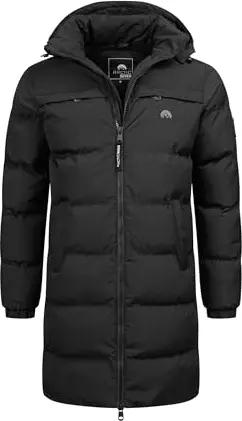 Herren Winterjacke (S-3XL) - abnehmbare Kapuze, Wasserabweisend, Windabweisend, lange Steppjacke, Warme Jacke Männer - AS-424 (L, Schwarz)