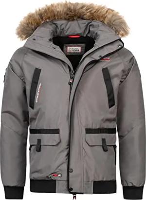 Herren Winterjacke (S-3XL) - 4 Taschen, Kapuze innen mit Teddyfell, hochschließender Kragen, Warme Jacke Männer - AS-426 (M, Dunkelgrau)