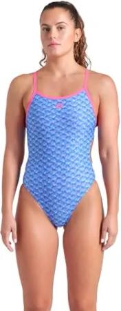 Damen Performance Monogramm Challenge Back Athletic One Piece Damen-Badeanzug, Blue River Multi/Shocking Pink, 38