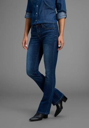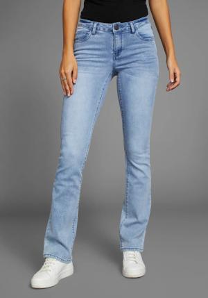 Bootcut-Jeans "Ultra-Stretch" ausgestellte Beinform, modischer Used-Look, normale Leibhöhe