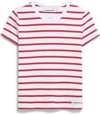 Damen RIPP-T-Shirt aus Bio-Baumwoll Mix KARDAA Stripes Slim Fit White-Coral Blush