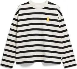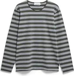Damen Longsleeve aus Bio-Baumwoll Mix MARYNAA FINE Stripe Loose Fit Dark Steel-oatmilk