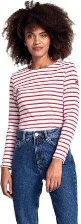 Armor Lux Damen Marinière Lesconil T-Shirt, Weiß (Blanc/Braise 320), 44 (Herstellergröße: 4)