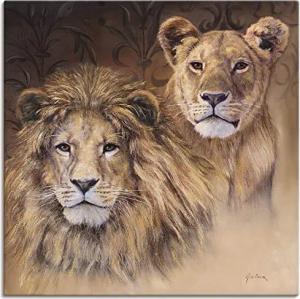 Wanddeko Leinwand Bilder Wandbild 40 x 40 cm Tiere Wildtiere Raubkatze Malerei Braun A1HA Löwen Porträts