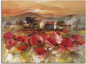 Wanddeko Leinwand Bilder Wandbild 60x45 cm Toskana Landschaft Italien Mohnblumen Botanik Blumen Malerei Kunst B8ZX