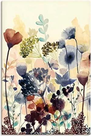 Wanddeko Leinwand Bilder Wandbild 80x120 cm Blumen Botanik Blumenwiese Malerei Blüten Abstrakt Modern T0PT