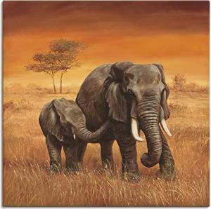 Wanddeko Leinwand Bilder Wandbild Wandbilder 70 x 70 cm Tiere Wildtiere Elefant Malerei Ocker A6ZO Elefanten