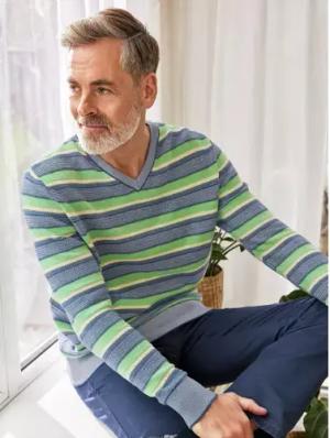 Baumwoll-Pullover Pima Cotton - Marine gestr. - male - Size: 54