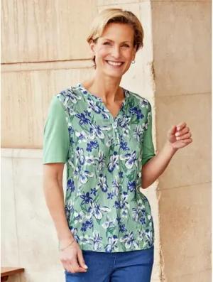Blusenshirt Lyocell - Grün geblümt - female - Size: 52