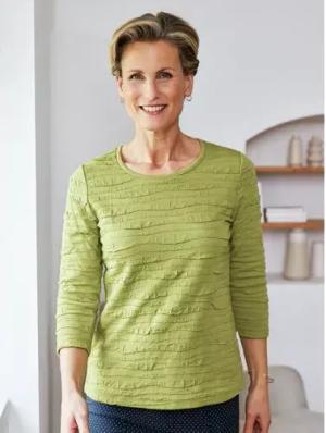 Rundhals-Shirt Strukturmuster - Pistazie - female - Size: 38