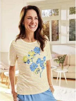 Rundhals-Shirt Viskose-Stretch - Gelb-Weiß - female - Size: 50