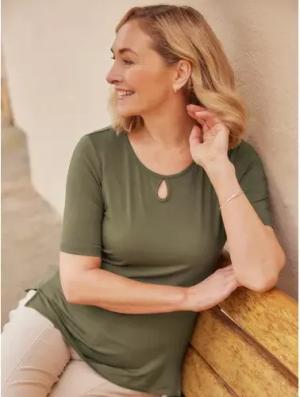 Sommershirt Tropfenausschnitt - Khaki - female - Size: 38