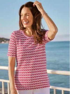 Rundhals-Shirt Strukturmuster - Beere - female - Size: 48