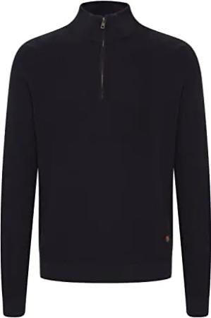 Blend BHCodford Herren Strickpullover Troyer Feinstrick Pullover mit Stehkragen und Reißverschluss, Größe:S, Farbe:Black (194007)