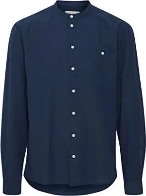Blend Herren Freizeithemd Hemd Stehkragen Brusttaschen Regular Fit Hochwertiges Leinen Leinenhemd, Größe:S, Farbe:Dress Blues (194024)