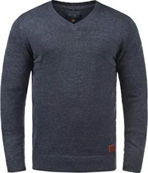 Blend Lasse Herren Strickpullover Feinstrick Pullover Mit V-Ausschnitt Und Melierung, Größe:3XL, Farbe:Ensign Blue (70260)