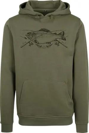 Angler Hoodie Herren - „The Reel Catch : Barsch“ - Kapuzenpullover für Angler - Geschenk für Hobbyangler (Oliv M)
