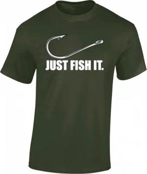 T-Shirt: Just Fish It - Geschenk für Angler - Anglerbekleidung Herren - Angelkleidung Männer - Petri Heil - Angel - Anglerin - Fishing - Fisch - Grau - Army - Spruch - Motiv - Lustig, Mausgrau, XXL