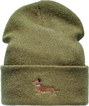 Beanie - „Dackel“ - Bestickte Strickmütze für Herren & Damen - Warme Wintermütze (Grün)