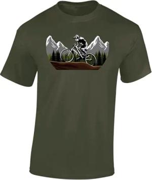 Fahrrad T-Shirt Herren - „Mountain Ride“ - MTB Mountainbike Shirt für Radfahrer (Army M)