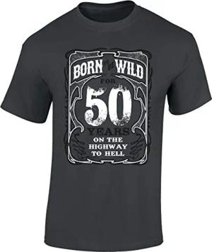 Geburtstagsgeschenk für Biker 50 Jahre - „Born to be wild 50 J.“ - Männer Geschenk T-Shirt zum 50. Geburtstag - Geburtstags Shirt Herren (L)