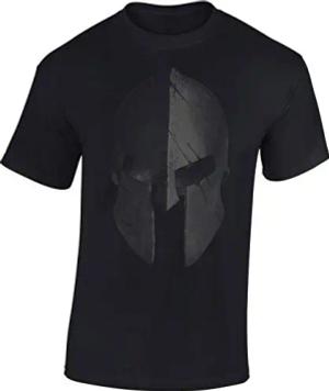 Herren T-Shirt - „Sparta Helm“ - Spartaner Krieger Motiv - Baumwollshirt Männer Freizeitshirt Streetwear (Schwarz M)