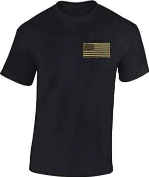Herren T-Shirt - „USA Flagge Stick Patch“ - Stars and Stripes Shirt für Herren & Damen - Amerika Fahne (Schwarz XL)