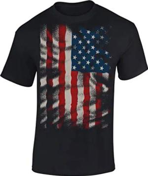 Herren USA Flagge T-Shirt - „Stars and Stripes/Flow Design“ - US Flaggen Shirt für Amerika-Fans und Patrioten (Schwarz XL)