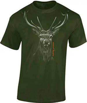 Jäger T-Shirt Herren - „Waldhirsch“ - Jagd Shirt für Männer mit Hirsch-Motiv (Army M)