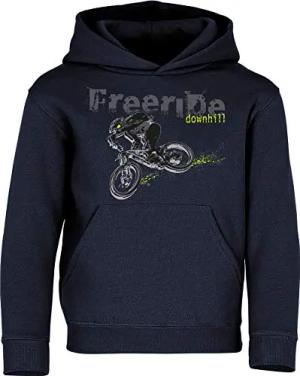 Kinder Fahrrad Hoodie - Freeride Downhill - Kapuzenpullover für Jungen & Mädchen - Mountainbike, MTB (Navy 128)
