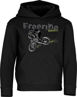 Kinder Fahrrad Hoodie - Freeride Downhill - Kapuzenpullover für Jungen & Mädchen - Mountainbike, MTB (Schwarz 128)