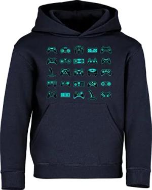 Kinder Gamer Hoodie - Controller - Gaming Kapuzenpullover für Jungen & Mädchen - Zocker Pulli (Navy 140)