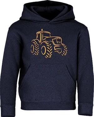 Kinder Hoodie - Traktor - Trecker Bauernhof Kapuzenpullover für Jungen & Mädchen (Navy 128 - Druck: Gelb)
