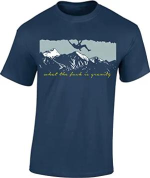 Kletter T-Shirt Herren - „What is Gravity“ - Lustiges Bouldern Shirt - Climbing & Outdoor Motiv (Denim Blue XL)