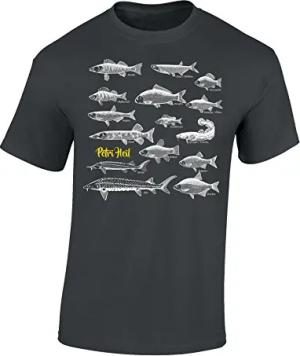T-Shirt: Fische Petri Heil - Geschenk für Angler - Anglerbekleidung Herren - Angelkleidung Männer - Angel - Anglerin - Fishing - Fisch - Grau - Army - Spruch - Motiv - Lustig, Dunkelgrau, M