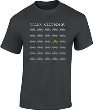 T-Shirt: Think Different - Fahrrad Geschenke für Damen & Herren - Radfahrer - Mountain-Bike - MTB - BMX - Fixie - Rennrad - Tour - Outdoor, Dunkelgrau, M