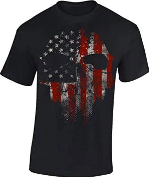 Totenkopf T-Shirt Herren - „American Skull“ - Horror Motiv - Gothic Biker Streetwear Halloween Shirt (Schwarz XXL)