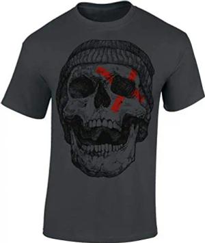 Totenkopf T-Shirt Herren - „Patched Skull“ - Horror Motiv - Gothic Biker Streetwear Halloween Shirt (Dark Grey M)