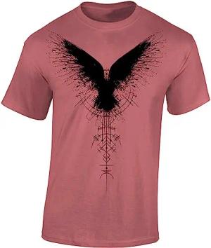 Wikinger T-Shirt Herren | „Schattenrabe“ | Viking Shirt Männer | Nordisches Raben Shirt (Rot XL)