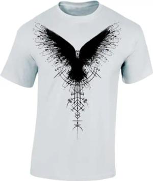Wikinger T-Shirt Herren | „Schattenrabe“ | Viking Shirt Männer | Nordisches Raben Shirt (Weiß L)